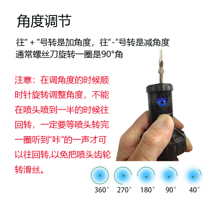 § 喷洒角度调节范围:40°~360°