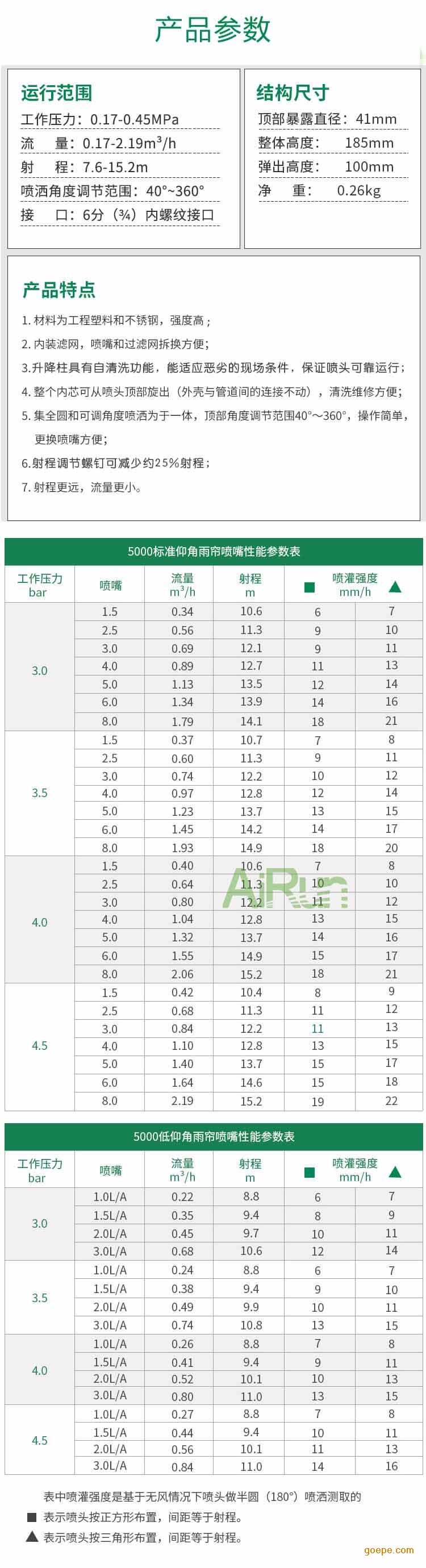 5004地埋式旋转喷头:该系列喷头适用于公园、游乐场、校园、工矿企业、街道等中小面积草坪、花卉的喷灌。